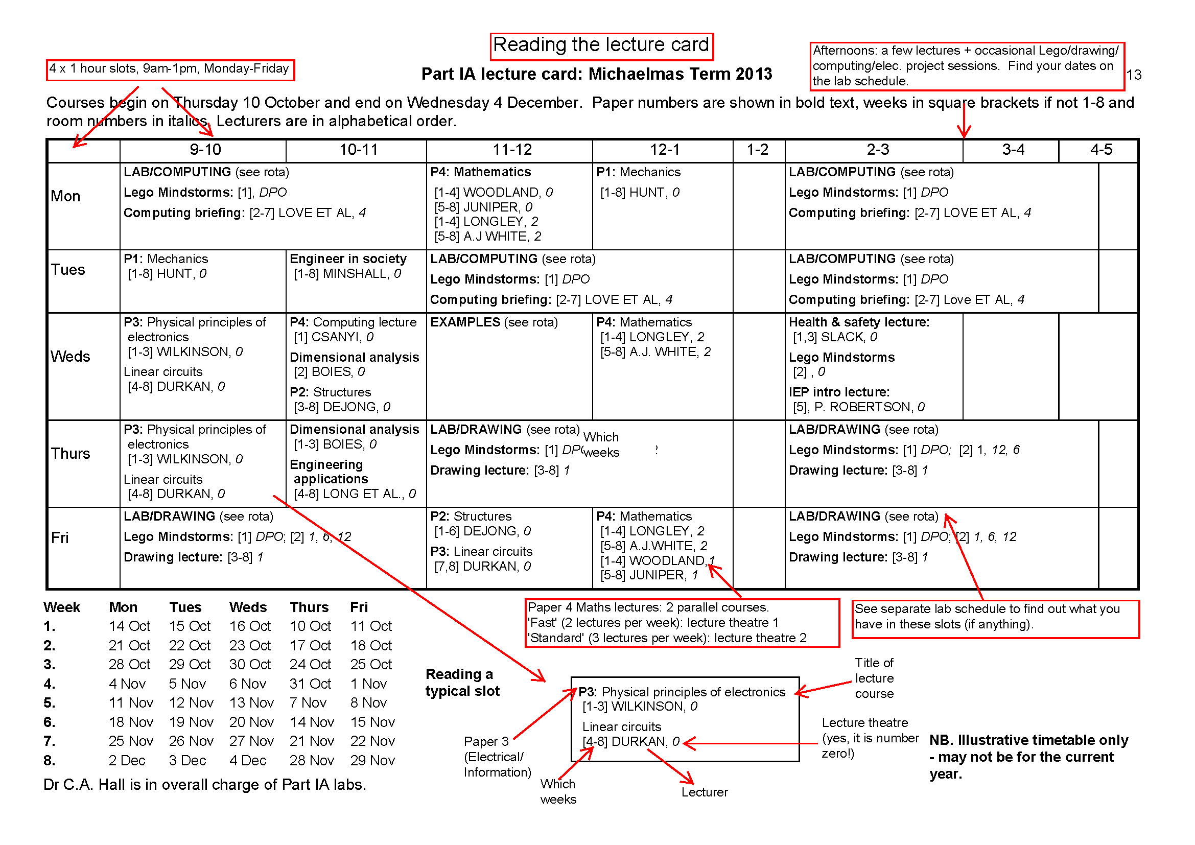- How to read the lab and coursework rota